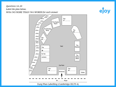 This kind is related to completing a plan (e.g. of a factory), a map (e.g. of a state area), or an image (e.g. a part of a device). There will be some answers to select. The content of the listening recordings is mostly non-academic. In many cases, the candidates are provided with an introduction about an event or about the structure, or the plan of a building (for example a trip to a museum, gallery, school…)